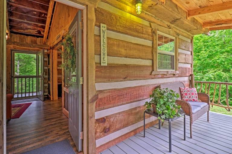 Covered Deck & Fire Pit: Smoky Mountain Cabin